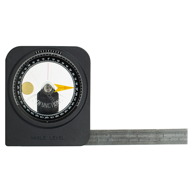 Прозрачный элемент подвижной рабочей части размещен в пластиковом корпусе, грани которого сходятся под прямым углом, позволяя использовать устройство в качестве угольника. Приблизительные/оценочные измерения выполняются по шкале с обратной стороны корпуса, цена деления которой составляет 2°. На лицевой части нанесена круговая градусная разметка с делениями через 1°. Дополнительная нониусная шкала дает возможность определять величину вертикальных углов с разрешением до 0,1° в пределах до 120 градусов. Сдвоенные кольцевые деления исключают ошибку при визуальном считывании показаний.